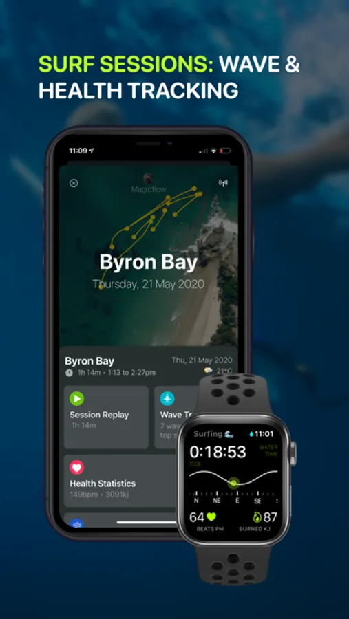 Surf Watch tracks your surf sessions and provides you with a full session replay, integration with Apple’s Health Kit, health statistics, wave analysis, board selection, condition analysis, and sharing.