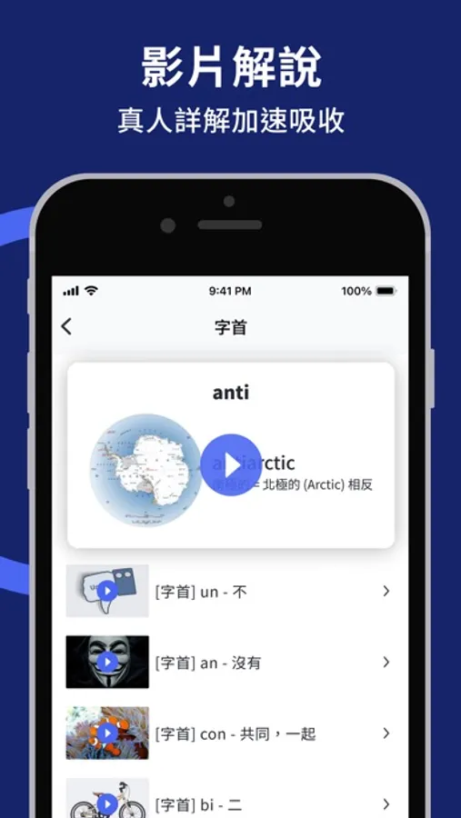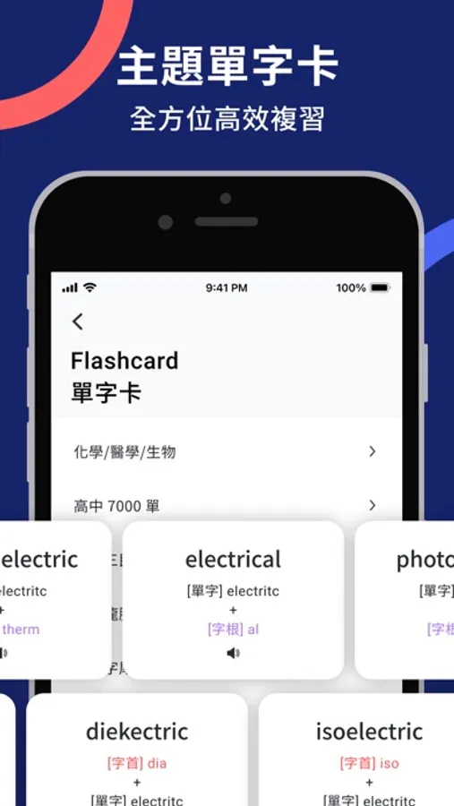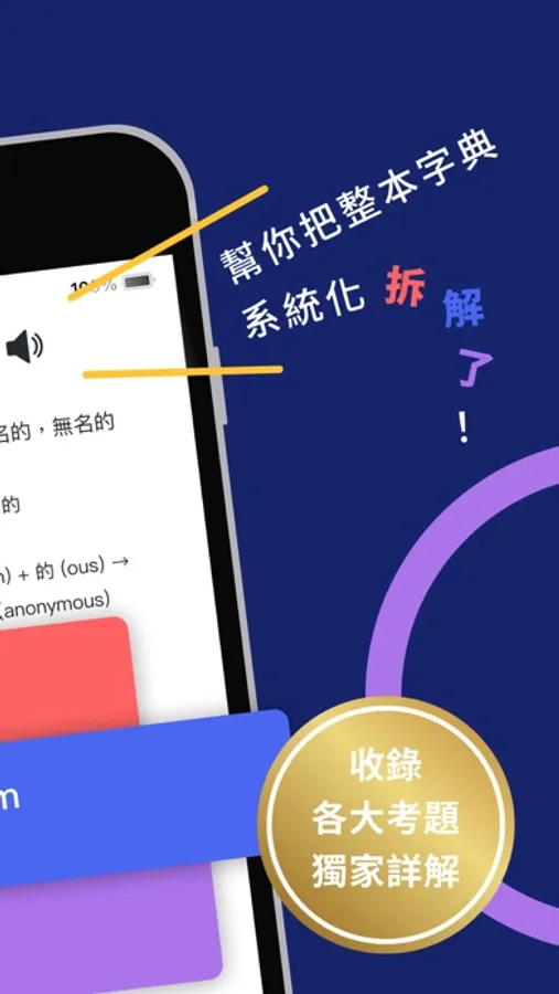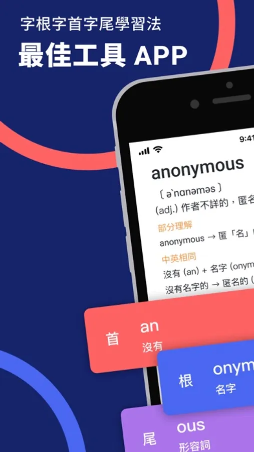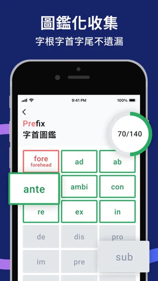 適合 GRE/GMAT/SAT/ACT/TOEFL/IELTS/TOEIC/學測/指考/公職/自我進修,世界上收錄最完整,正確度最高的字首字根字尾APP