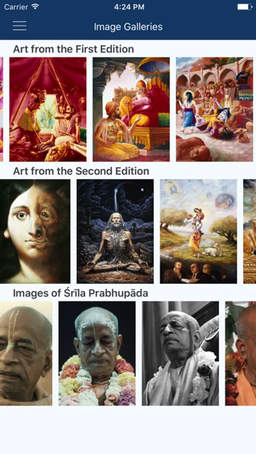 • An extensive image gallery, including paintings from the first and second editions of the Bhagavad-gita As It Is.