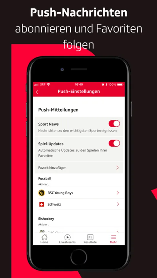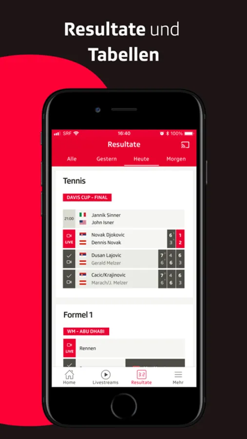• Sämtliche SRF-Liveübertragungen im Livestream auf dem Smartphone und Tablet