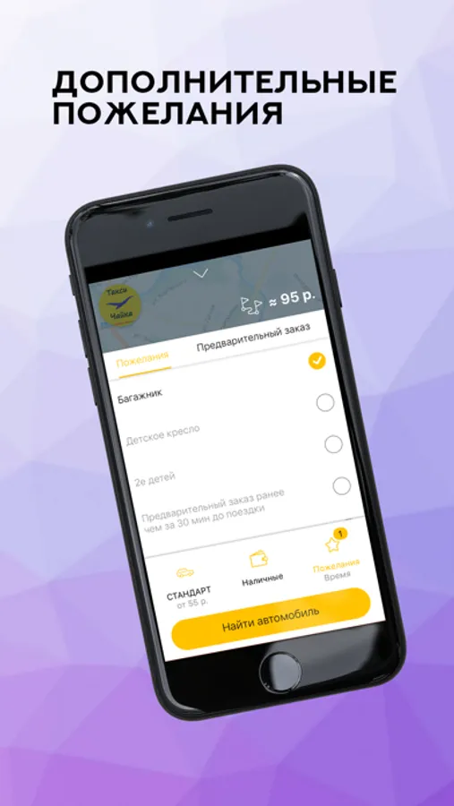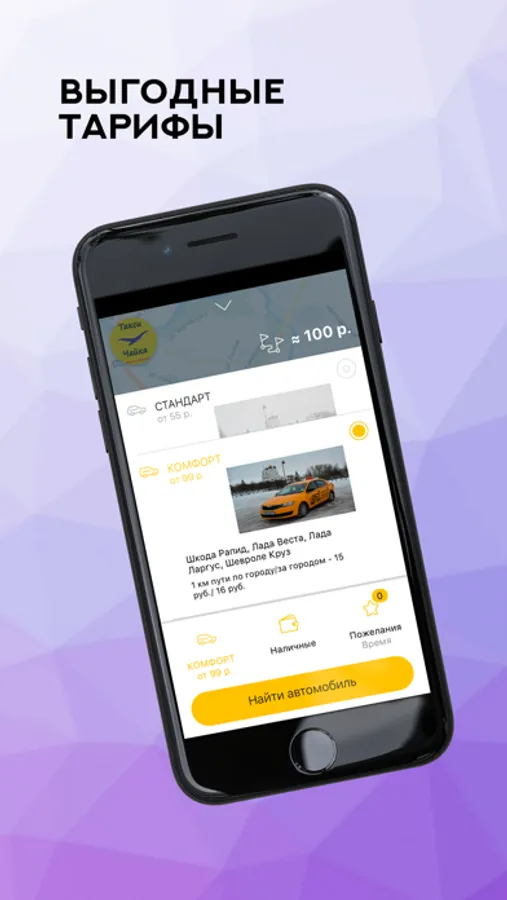 Приложение автоматически определит место подачи экипажа, рассчитает расстояние и стоимость поездки до конечной точки.