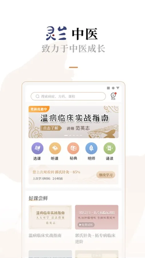 灵兰中医APP是由灵兰家族下的“中医书友会”和“灵兰书院”共同浇灌的一株幼苗。她的萌发,来自灵兰团队“致力于中医成长”的初心。