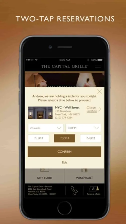 From the moment you download The Capital Grille Concierge app, the experience is one of service at your fingertips. Seamlessly make a reservation with only a few taps, explore Food and Wine Pairings from our Sommelier, view a live up-to-the-minute Wine List, peruse public Wine Lockers or manage your Wine Locker with ease, and so much more.