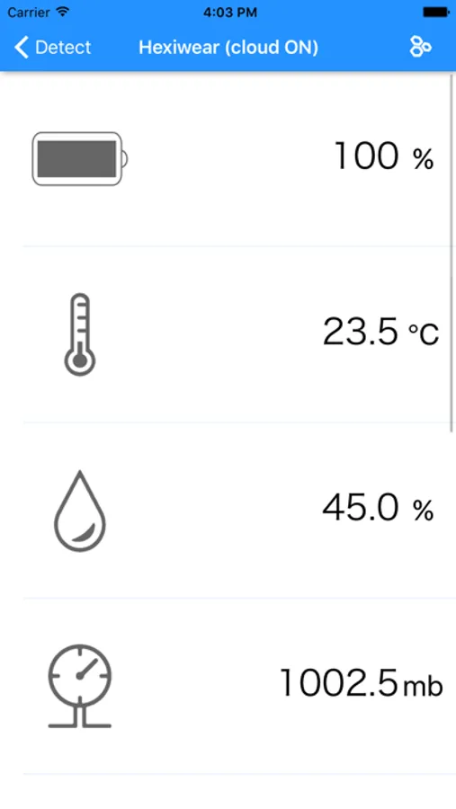 Readings generated by sensors are collected and pushed to Mikroelektronika Click Cloud where can be further analyzed. The cloud connection is controllable by a ON/OFF switch in settings.