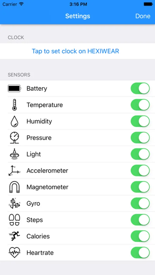 Connect to HEXIWEAR Bluetooth LE wearable IoT device and take full control of sensors contained in it.