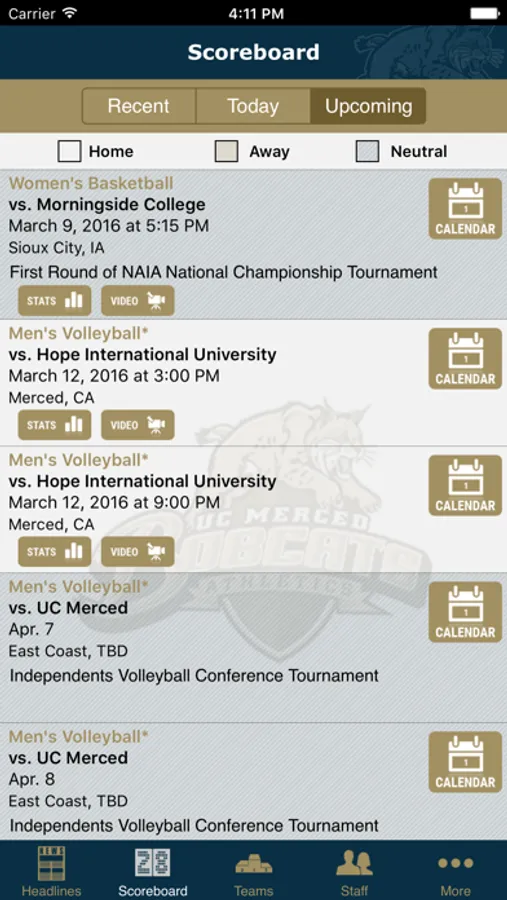 Navigate seamlessly through UC Merced Bobcat social media, live stream, stats, game recaps and much more.