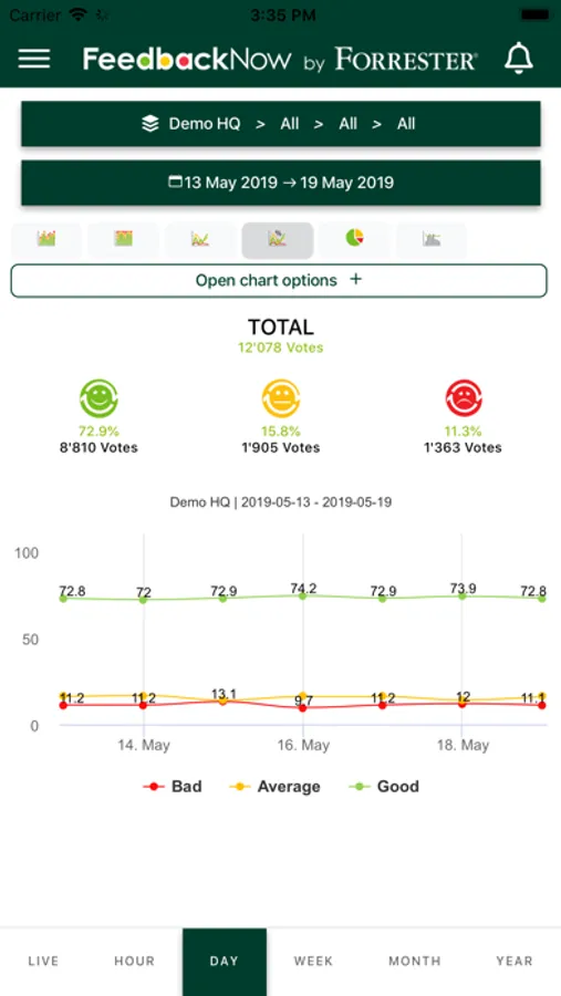 Mobile application to access real-time results and key past trends. Access is restricted to existing FeedbackNow clients.