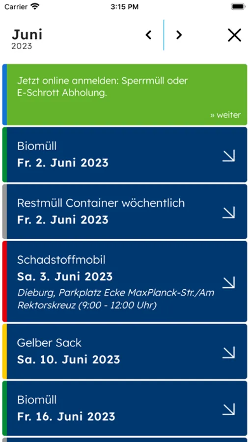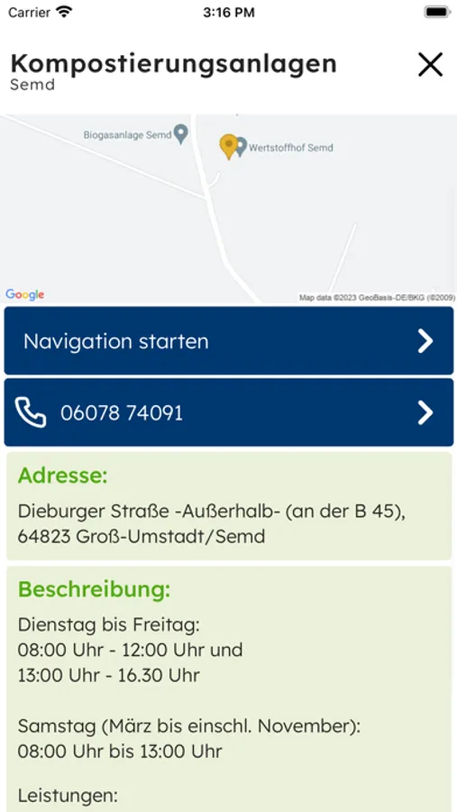 Die App navigiert außerdem zum nächsten Recyclinghof und kennt die Öffnungszeiten.