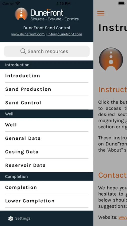 This app is designed and developed by DuneFront as a tool for understanding the various sand control treatments along with their selection, design, installation and evaluation considerations. It requires only a basic understanding of common oilfield operations and terminology so can be used by new sand control professionals as well as experienced practitioners looking for a refresher on the fundamental concepts with additional references and tools.