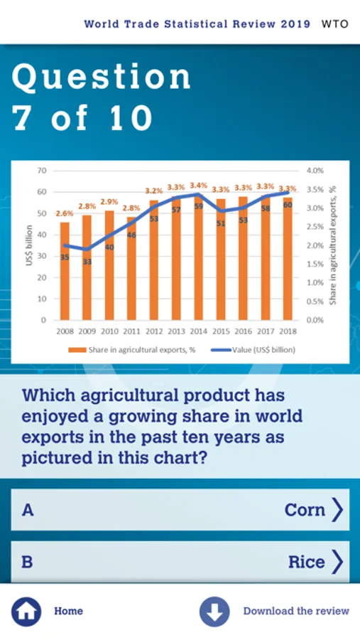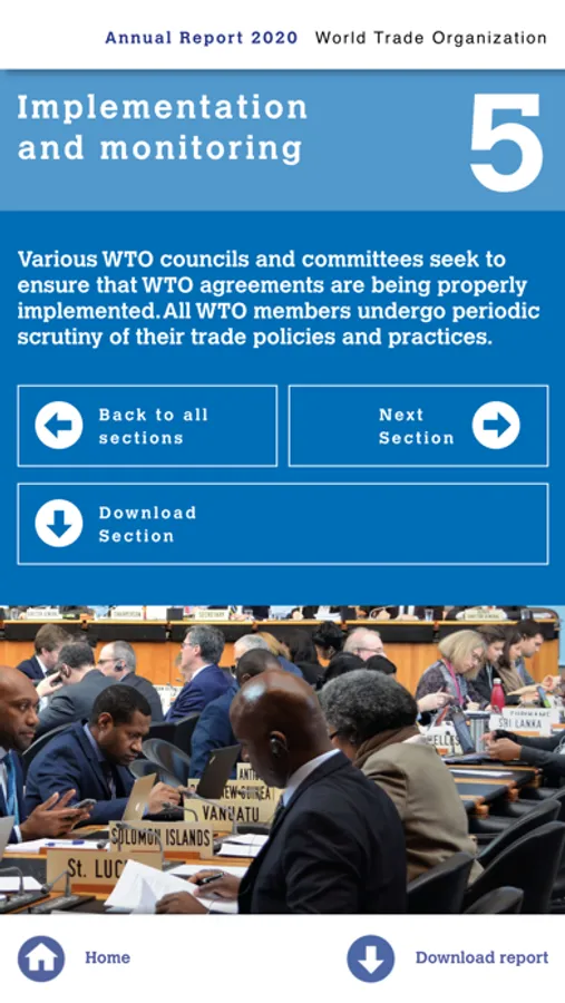 The Annual Report summarizes the WTO's activities over the past year and provides detailed information on the organization's structure and budget. The World Trade Statistical Review provides a statistical analysis of the latest developments in world trade. The World Trade Report focuses on a particular theme, with the aim of deepening understanding about trends in trade and trade policy issues.