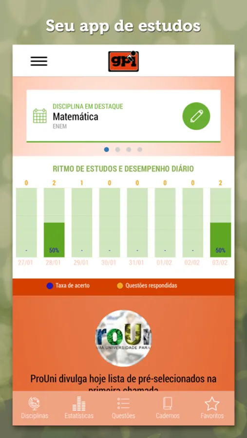 Através do App de Questões ENEM - GPI, desenvolvido pelo GPI, você tem acesso a diversas ferramentas de estudo através do seu smartphone. É útil. É simples. É grátis!