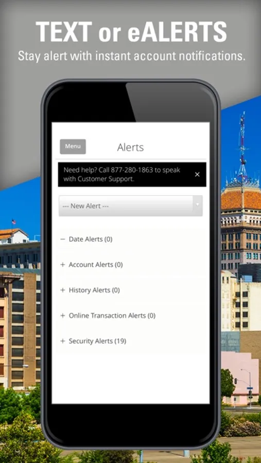 • Set up text or email alerts to warn you of account status changes, help you avoid fees and be alerted to suspicious account activity.