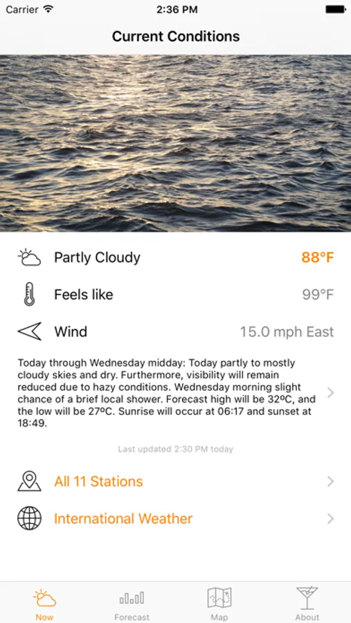 Highlights include: Current weather, updated every few minutes. Detailed textual summary and outlook. Five-day forecast. Up-to-date radar and satellite imagery. And much, much more. All rounded off by stunning photography from the island.
