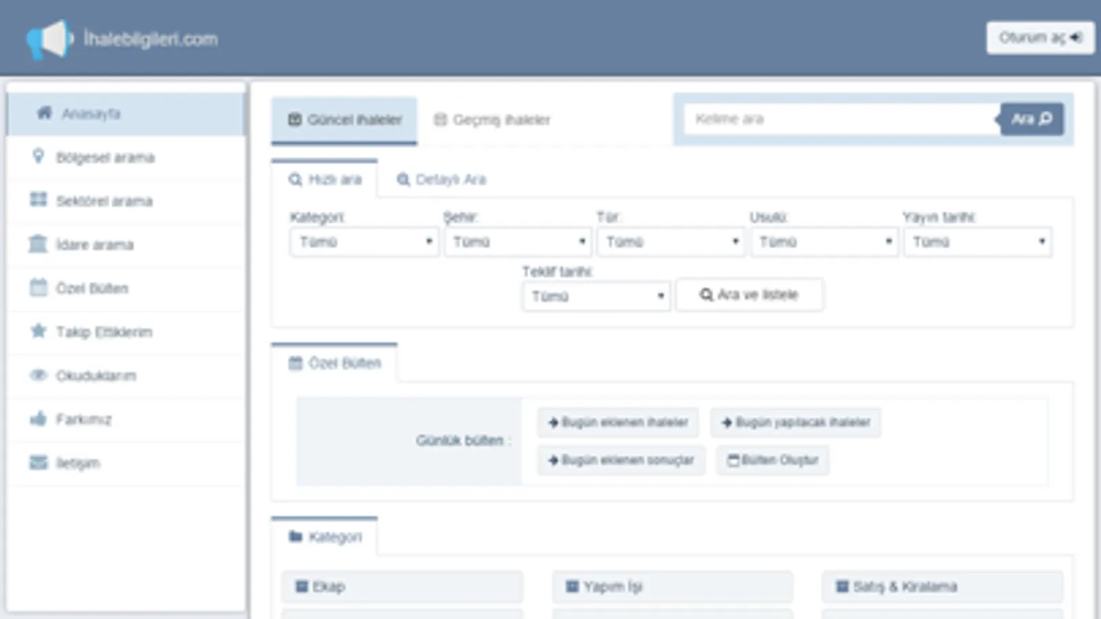 İlgilendiğiniz ihalelelere uygun arama kriterlerini kaydederek kendinize özel ihale bültenleri oluşturabilirsiniz.
