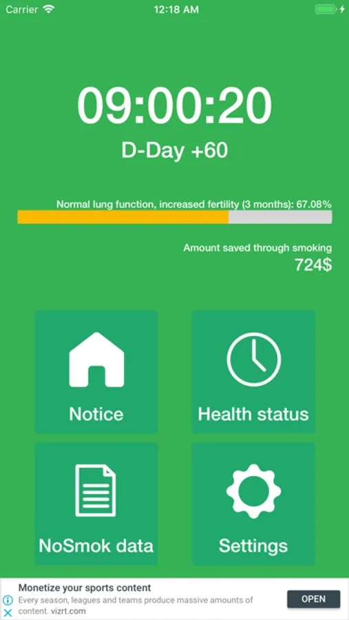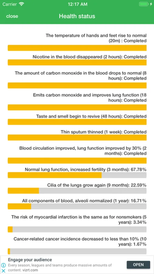 (When you start quitting smoking, you can see the recovery status of your body through the progress of the status bar.