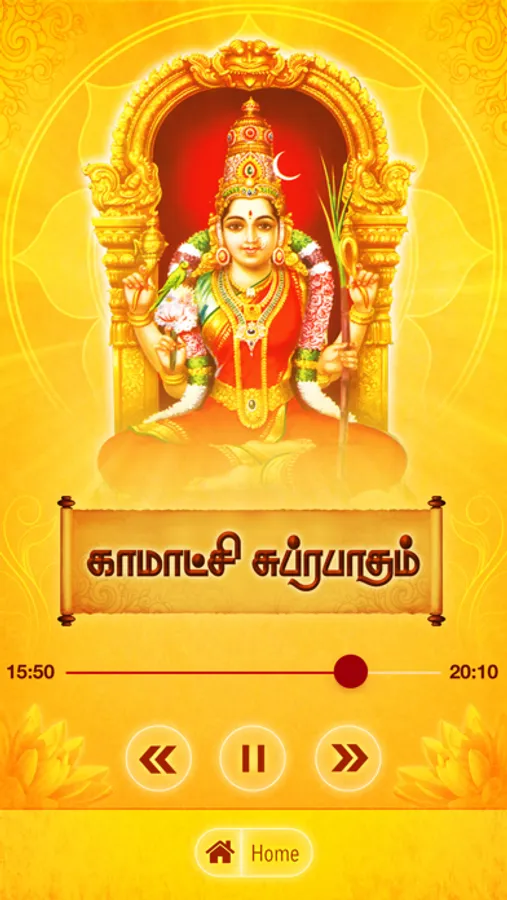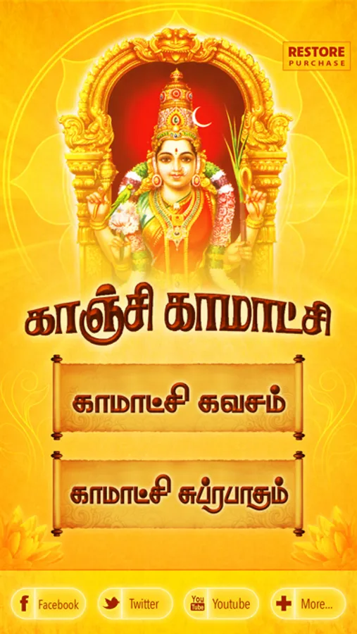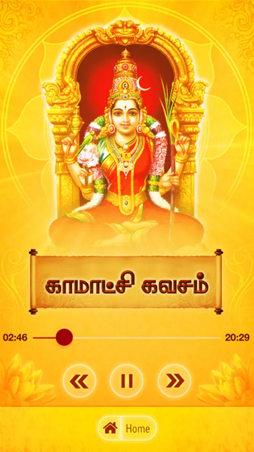 The Goddess Kamakshi is in a sitting posture in the temple. This posture is called the Padmasana posture. The Padmasana posture is said to resemble a lotus. In the Yogic practice this resembles the form of meditation. The Goddess holds a Sugarcane bow on her left upper arm and Lotus, Parrot in her right upper arm. The Goddess also has divine chakras called Pasa and Angusa in her arms.