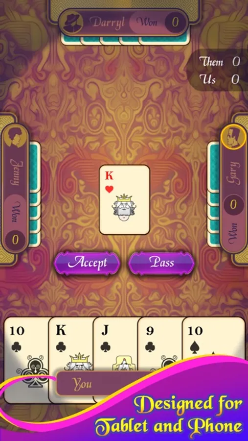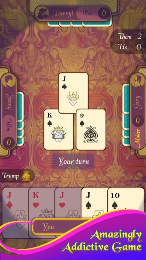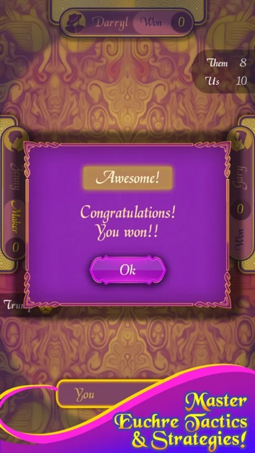 Euchre comes with three smart AI players who will keep the game highly challenging.