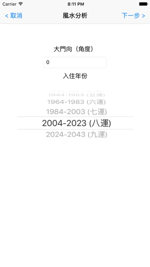 2. 將電話平放, 螢幕向上, 電話指向大門, 待羅盤停止轉動, 按風水分析