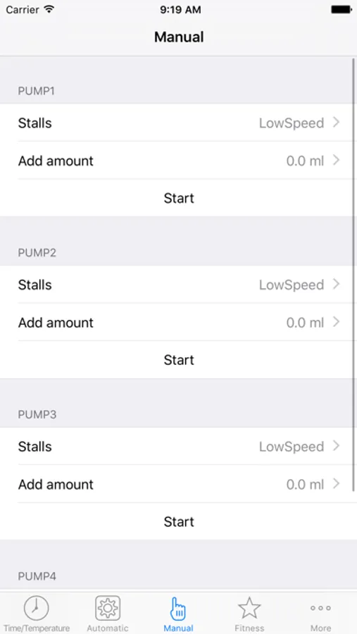 3.Manual control modules, you can manually adjust the dosing quantitative in this module, this module also contains calibration;