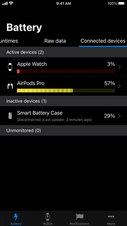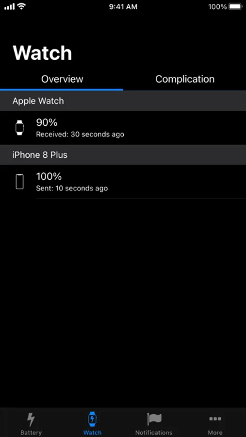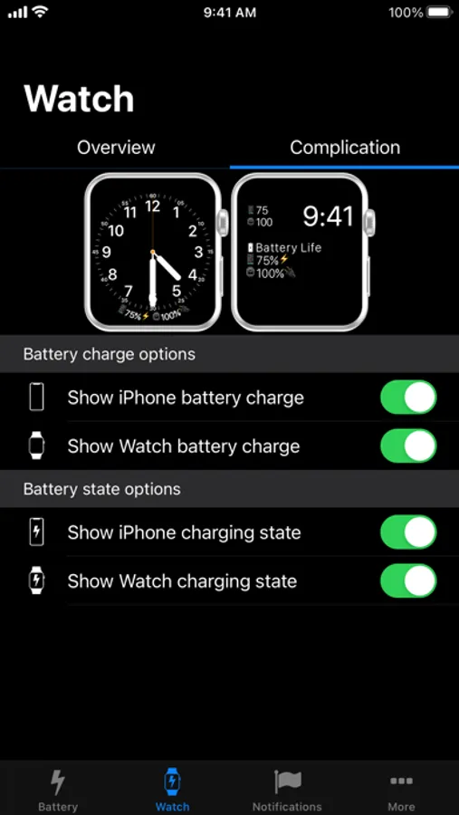 • Monitor battery charges of your Apple Watch and iPhone from Battery Life’s Watch application