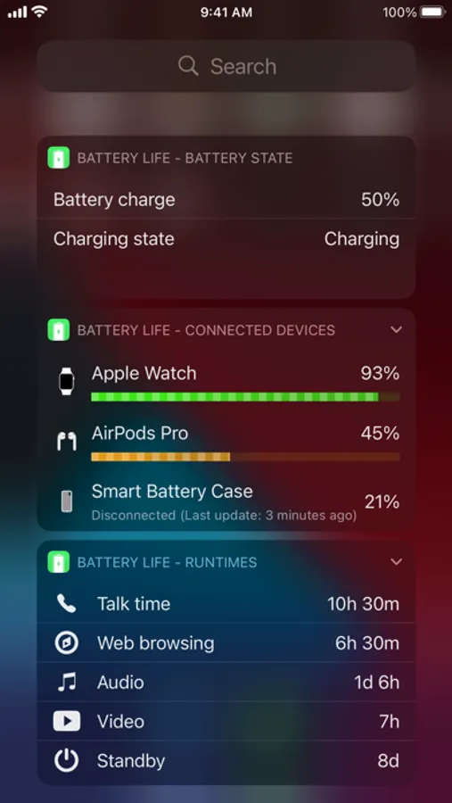 Monitor iPhone and Apple Watch battery data at a glance with Battery Life - the ultimate battery analysis tool downloaded by millions of users since 2014.