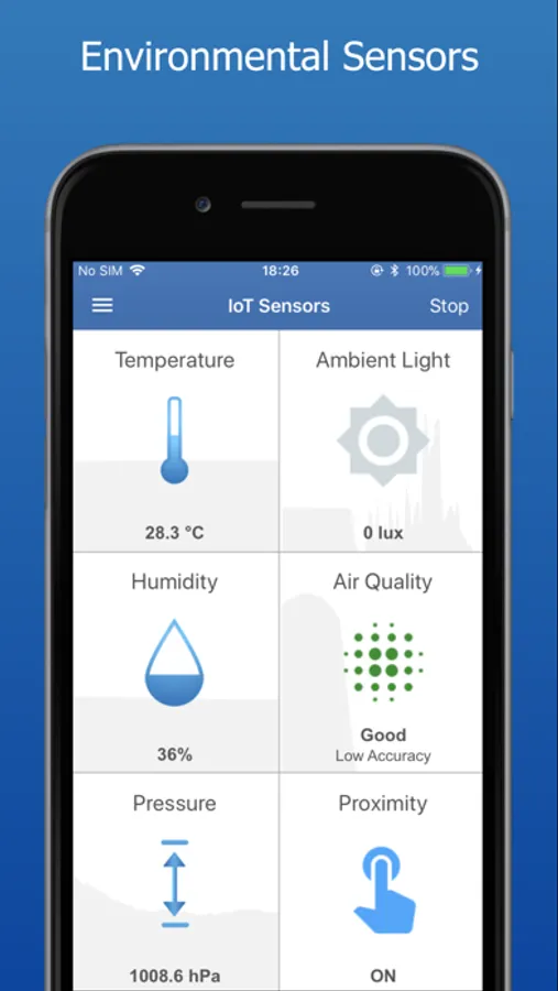 With the app you can visualize the raw data coming from the development kit sensors, including accelerometer, gyroscope, magnetometer, temperature, pressure and humidity.