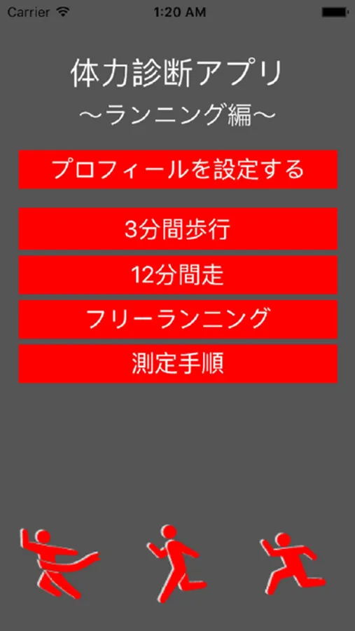 ・ホーム画面で「3分間歩行」、「12分間走」、「フリーランニング」の