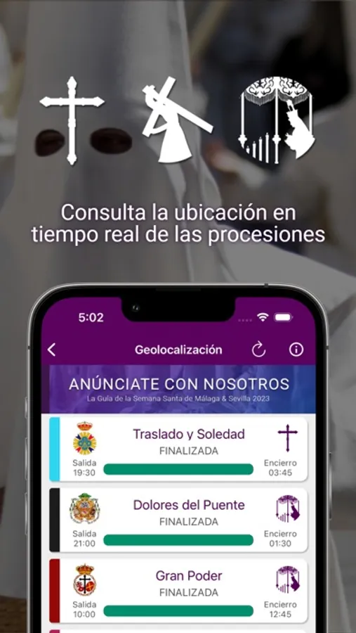 - Geolocalización en tiempo real de la ubicación de las procesiones.
