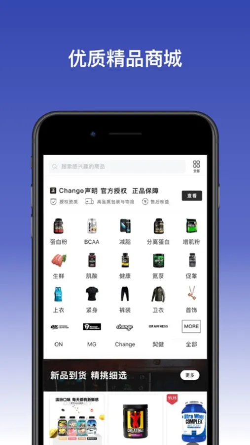 - 我们还和市场上知名品牌中的佼佼者们合作,为大家提供优质的生鲜,健身服饰,配件等健身相关产品