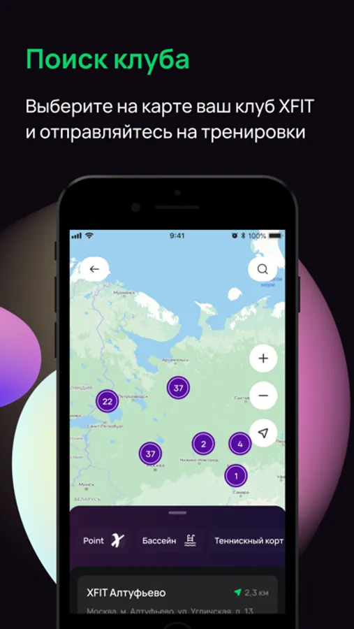 - получать полную информацию о клубах сети, включая фотографии и контакты;