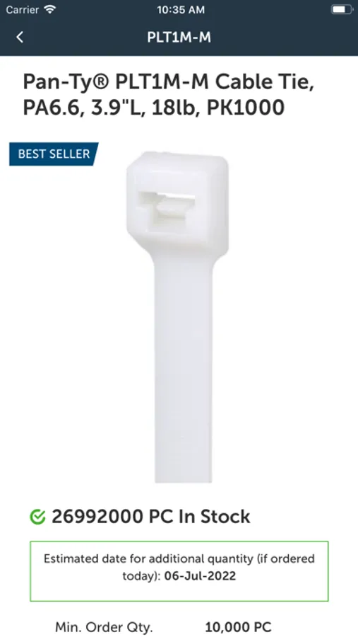 The Panduit Check-It mobile app provides customers with instant access to product availability. Users can search for any Panduit product by part number to retrieve product availability details.