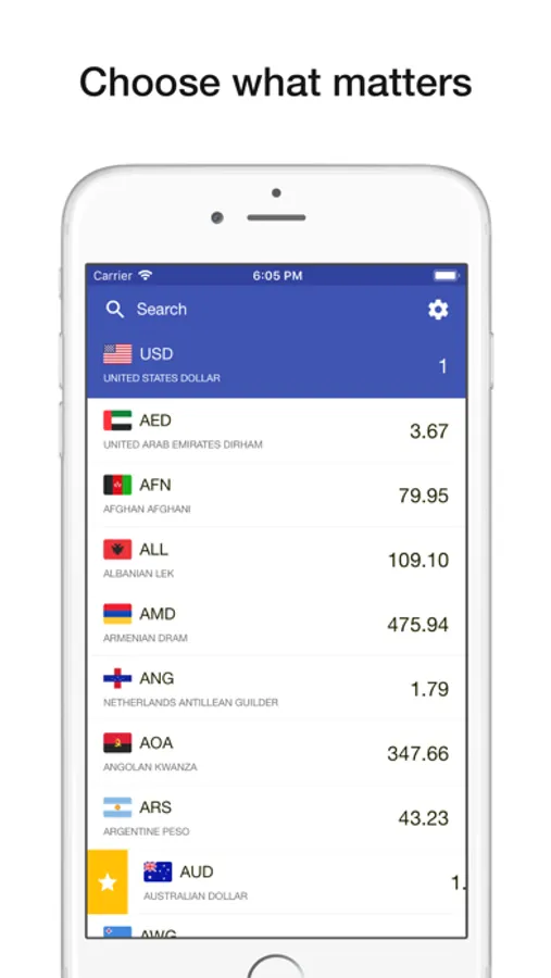 – Pin your favourite currencies to the top