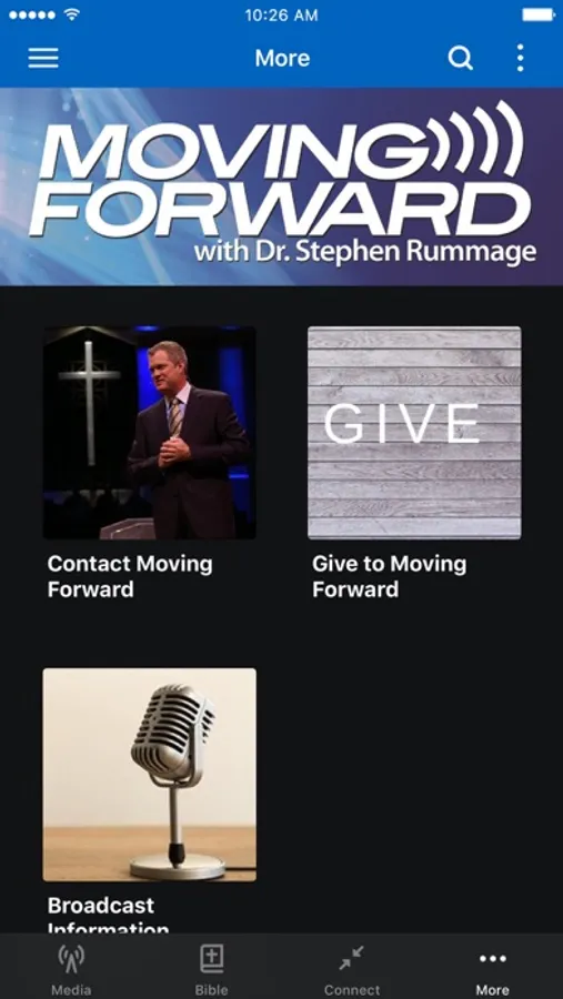 The Moving Forward with Dr. Stephen Rummage app was developed with the Subsplash App Platform.