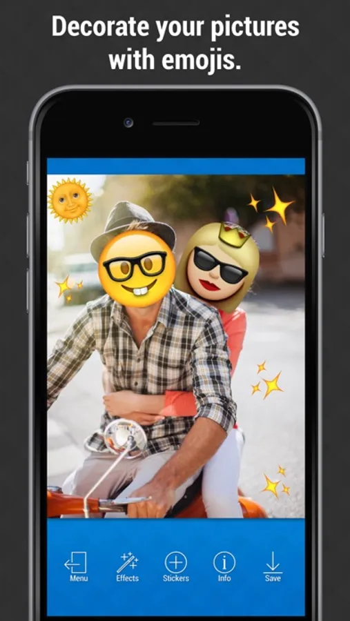 The app is fun and easy to use. All you have to do is simply load up a picture and then you can start decorating it with all the emojis you want!