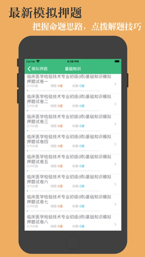 本软件适合于2023年全国卫生专业技术资格考试,临床医学检验技术 初级(师)考试专业,专业代码207,精心准备了考试题库,每一道试题都有答案解析,为考试的提供了充分的复习准备,可随时随地学习练习,有效帮助顺利通过考试,学习知识通过考试必备神器!