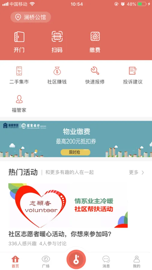 物业缴费,一键报修,一键开锁、邀请访客、二手市场、投诉建议、移动验房