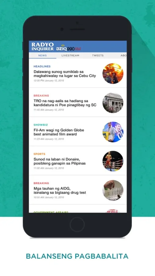 Ang Radyo Inquirer app ay naghahayag ng balita para sa mobile users. Hatid ang