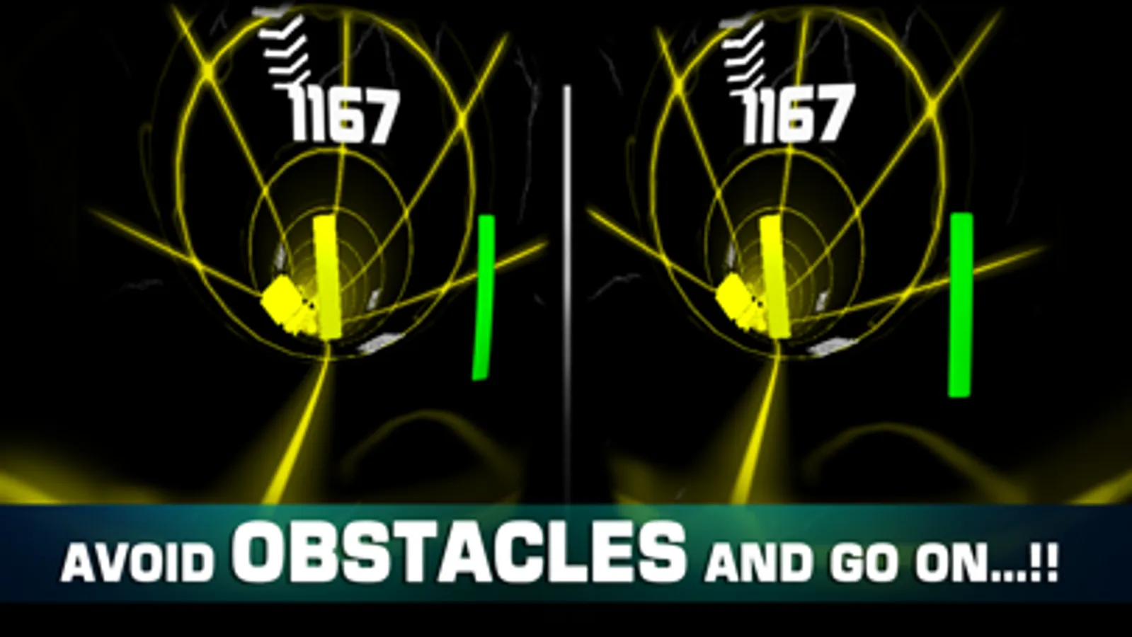 Experience ultimate VR gaming bliss as you swoosh down a tunnel- dodging obstacles and racing along at top speed! The world narrows down into a neon tunnel as you rush through it!! A unique 3D tunnel racing game where you fight against all odds to survive in the tunnel without hitting the various neon colored cube obstacles in the track. Tilt your head and avoid the cube with ultimate speed.