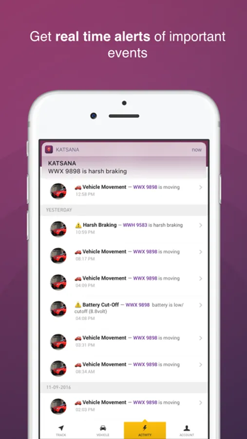 + Display activity stream for your vehicle such as vehicle movement or when battery cutoff