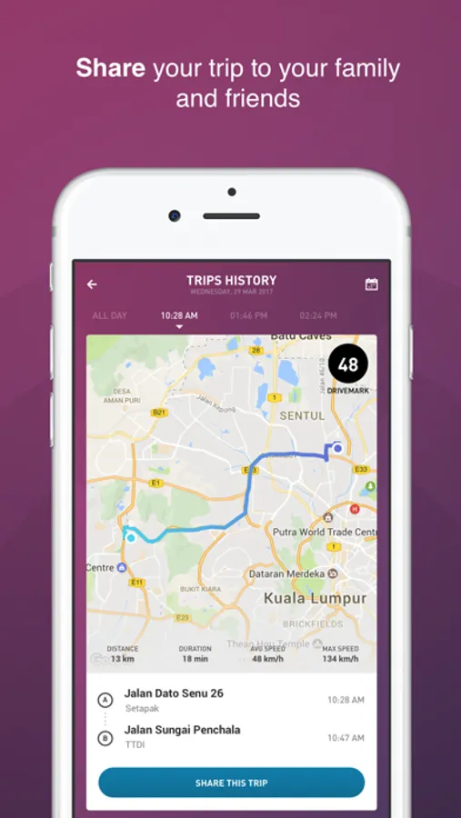 + Show detailed info at specified time from your trip including duration, distance, time and speed