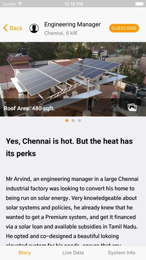 Curious about solar but unsure if it works - weekly energy, monthly savings? Take a "Solar Test Drive" and learn yourself. Download the App, Subscribe to Oorjan customers and get access to LIVE systems, including maintenance notifications, city-wise solar generation averages and installation specifics.