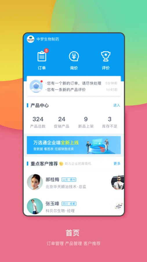 “万选通企业端”(原来客易)是万选通应用的对应企业版,是集数据统计、信息交互与分享传播、点对点服务、客户关系管理和销售管理等功能的移动端网络服务平台。企业使用该应用可以便捷的发现商机,提高销售业绩。配合万选通的企业中心网站,可以实现对企业营销的全面管理。