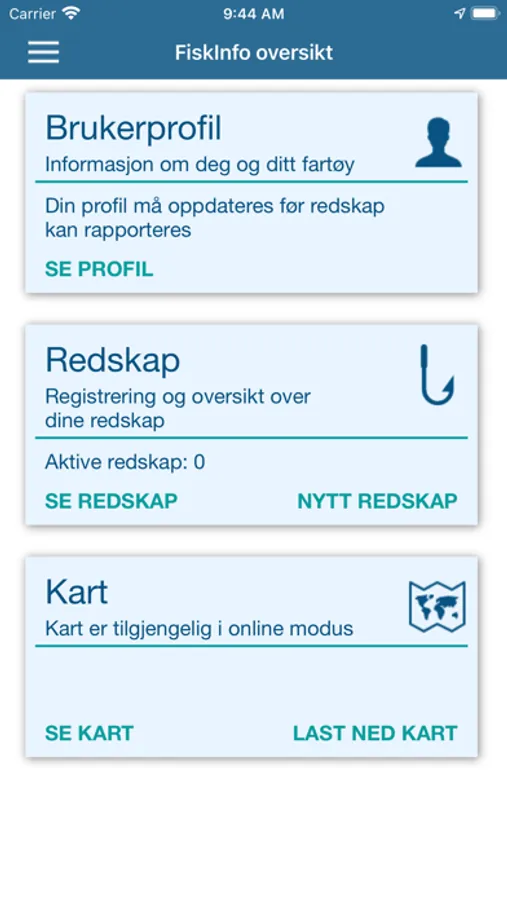 Du må på forhånd ha opprettet en bruker hos BarentsWatch. Med bruker kan du laste ned redskapskart og andre kart, eller administrere abonnement på slike kart. Med appen har du tilgang til FiskInfo fra BarentsWatch direkte på mobilen.
