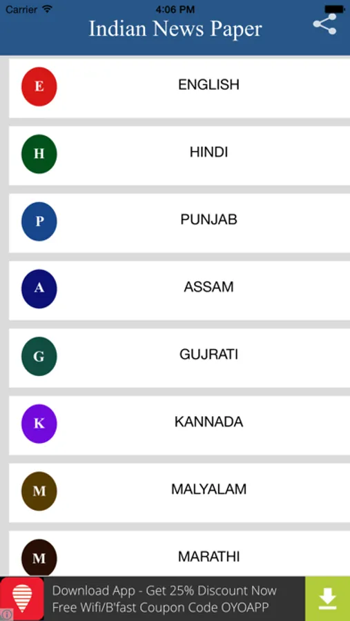 Indian News Papers app is for reading the news papers in many language s like Hindi, English, Marathi, Tamil and in many more Indian language news papers in this single app....