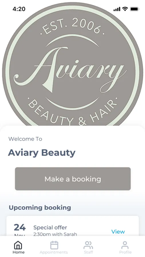 The Aviary Beauty app makes booking your appointments and managing your loyalty points even easier. You're just a few taps away from feeling good and looking great!