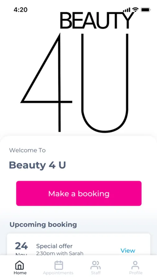 The Beauty 4 U app makes booking your appointments and managing your loyalty points even easier. You're just a few taps away from feeling good and looking great!