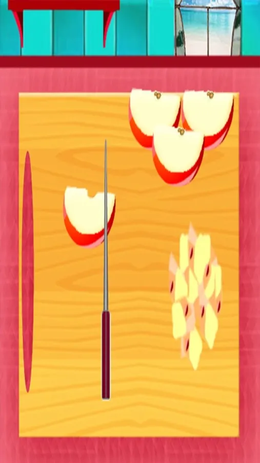 *** Cutting pie ingredients (apple, chocolate, pumpkin) into pieces.