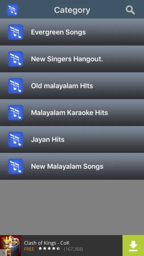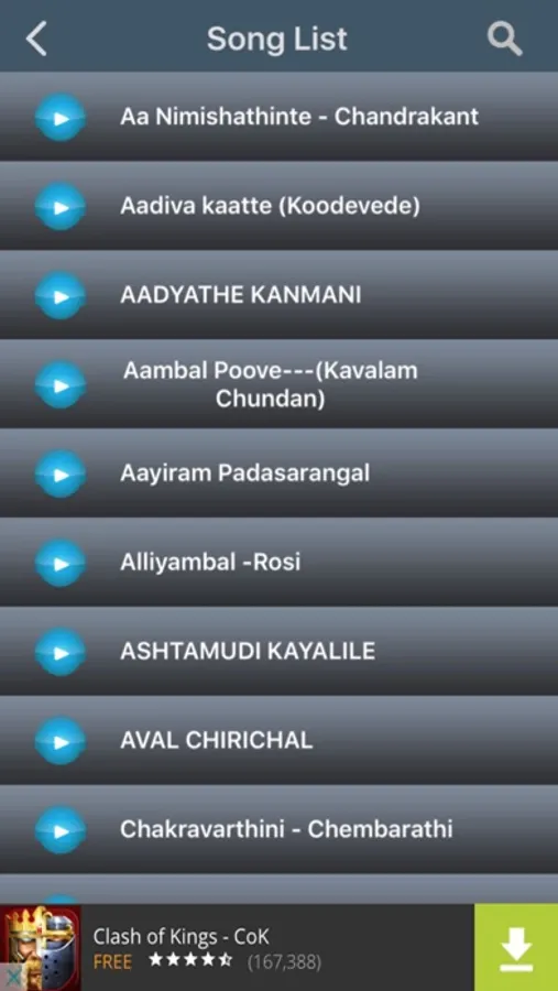 malayalam songs &karaoke music from one app.You can find songs from our great malayalam people like V. Dakshinamurthy , K. Raghavan , G. Devarajan M.S. Babu Raj P. Bhaskaran,O.N.V. Kurup and Vayalar Rama Varma etc. Also we trying to make seperate categories of mammooty,mohanlal,jayan,premnaseer,other actors listing.