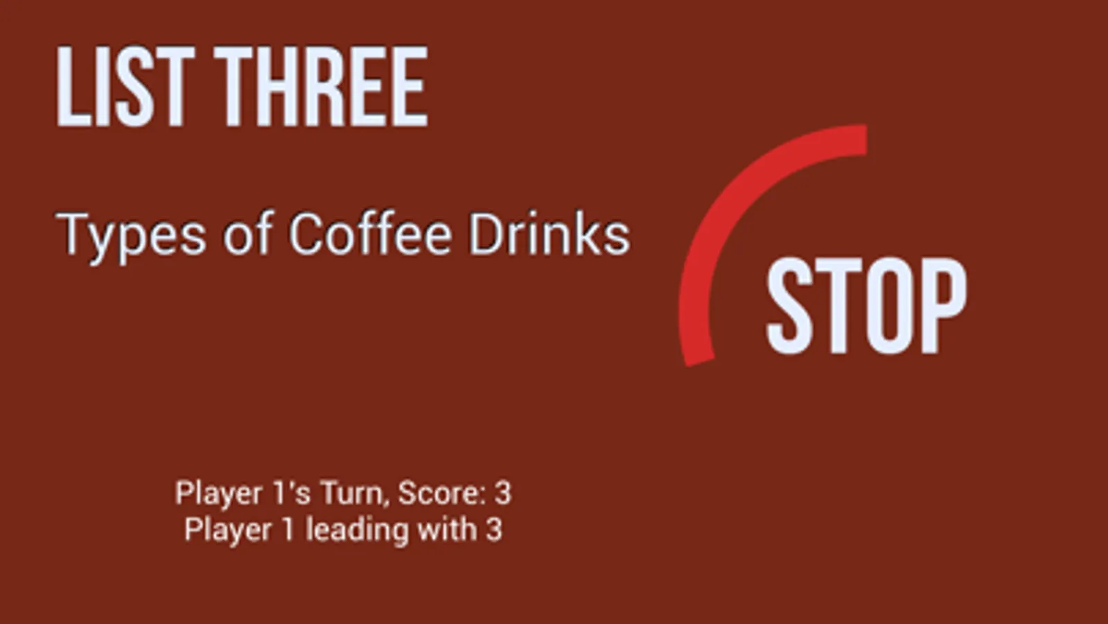 It's a lot harder to think under the pressure. You have five seconds to List Three. With the time ticking on your turn, you must name three valid answers or hear the sound of the buzzer!