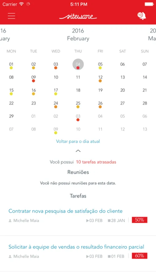 No painel inicial você tem acesso às reuniões e tarefas que estão sob sua responsabilidade, além de executar e comentar cada uma destas tarefas. A versão mobile permite também acompanhar o resultado de seus indicadores de desempenho por meio de faróis ou gráficos.